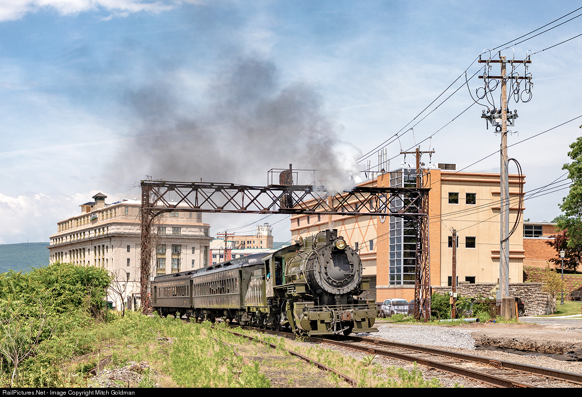 Steamtown's 1929 0-6-0 Baldwin built switcher ducks under the former Delaware, Lackawanna & Western signal bridge after passing the 1908 built DL&W depot which is now owned and operated by the Radisson serving as an upscale hotel in the city of Scranton. This was the first of four Steamtown "Scranton Shuttle" excursions which operate just beyond the spot this image was captured.