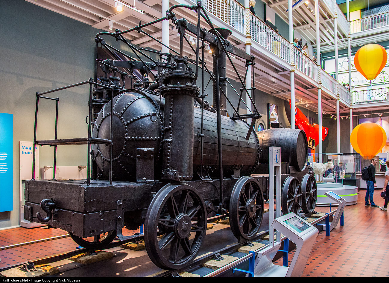 | In one of the halls of the National Museum of Scotland we find the 2nd oldest surviving locomotive in the world: the Wylam Dilly. It was built in 1815, and sister locomotive the Puffing Billy which is on display in London is the oldest. It was used on a coal hauling tramway, but due to the primitive trackage it was rebuilt almost immediately with 8 wheels. When more conventional rails were developed, it reverted to its original 0-4-0 design in 1830. Records show this odd creature operated well into the 1860s. It has been a museum piece in Edinburgh since 1883! |