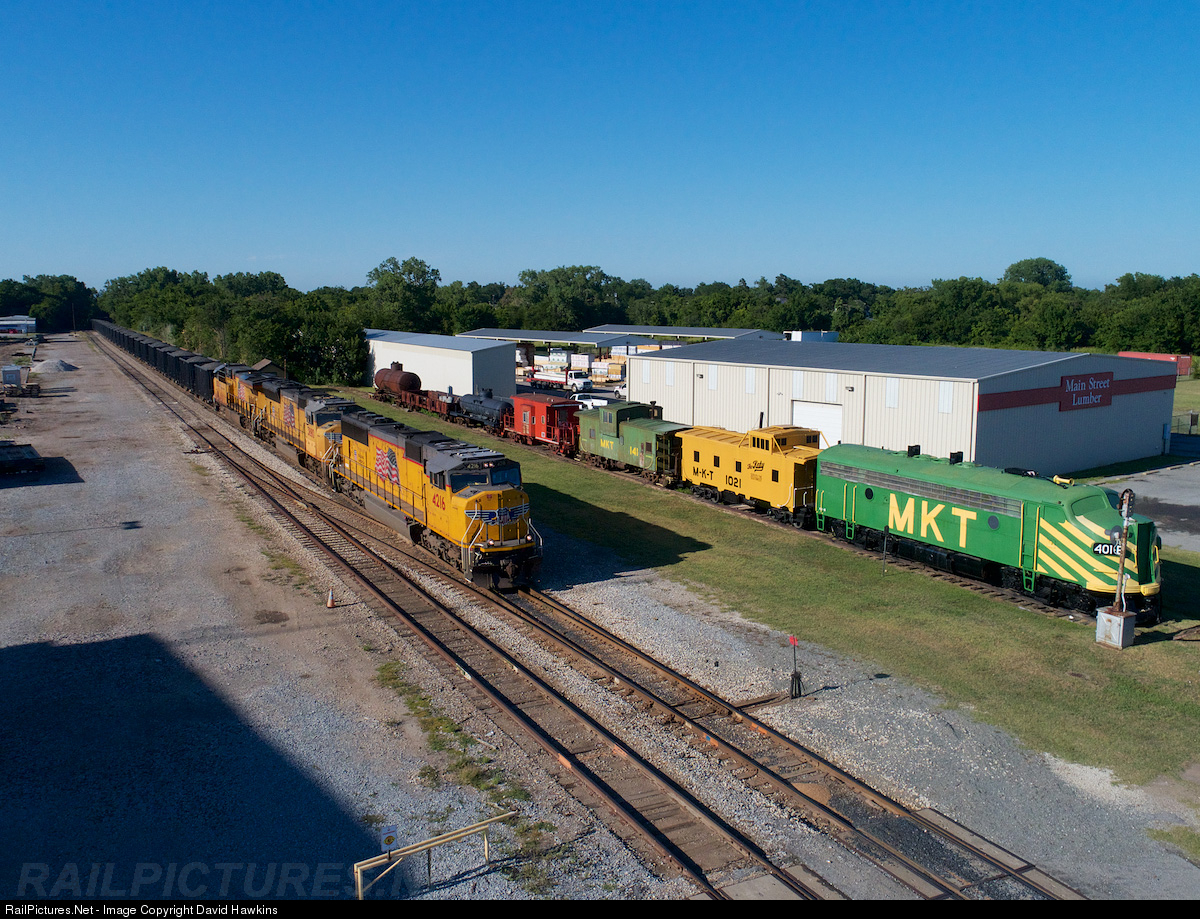 | DGNO rock train is about to depart the Denison Depot. The UP delivers from Stringtown OK to Ray yard where the DGNO crew get on and take it from RAY yard to the final destination at Royce City Texas on the MKT. |