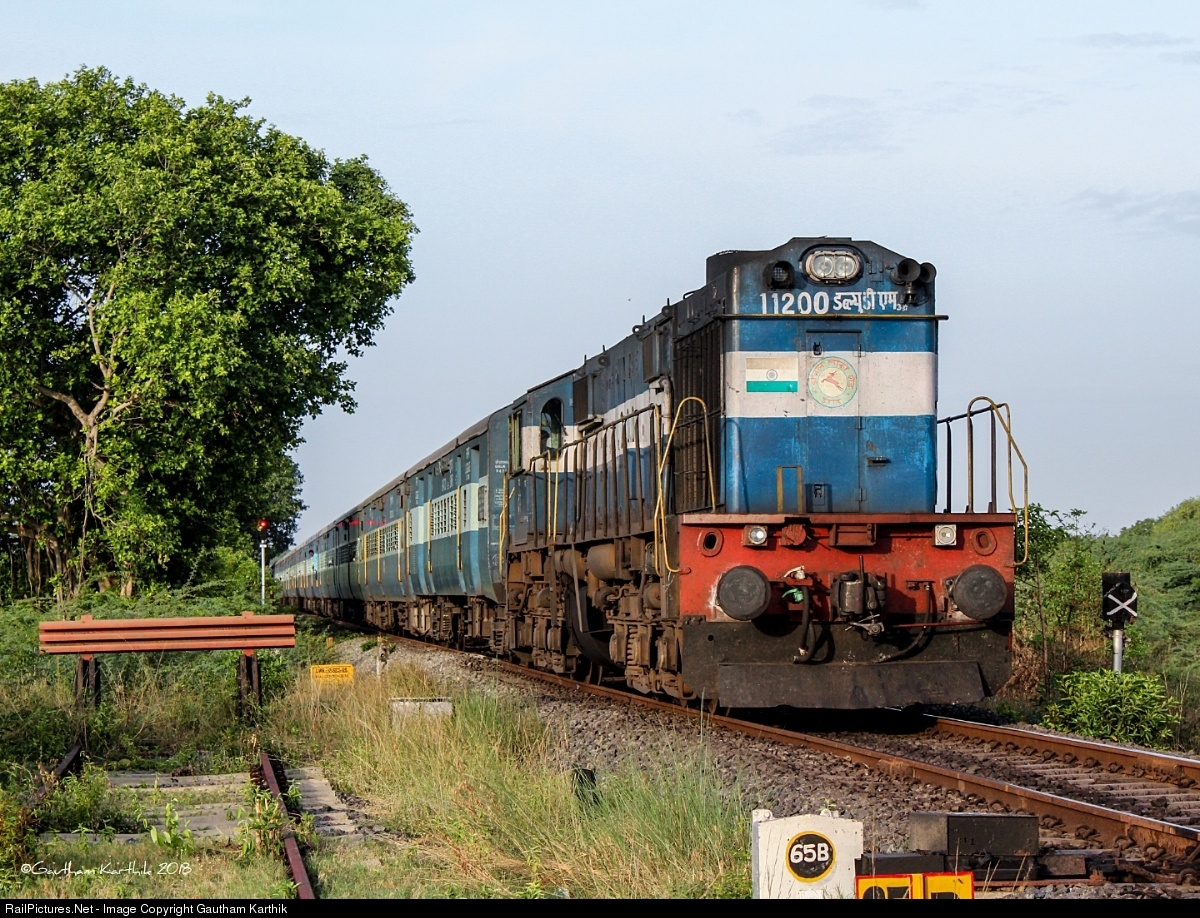 | The passenger train connecting the Cauvery delta region to the "Silicon Valley of India", Karaikal-KSR Bengaluru Fast passenger approaches the tranquil Anandathandavapuram station powered by an ERODE WDM-3D. |
