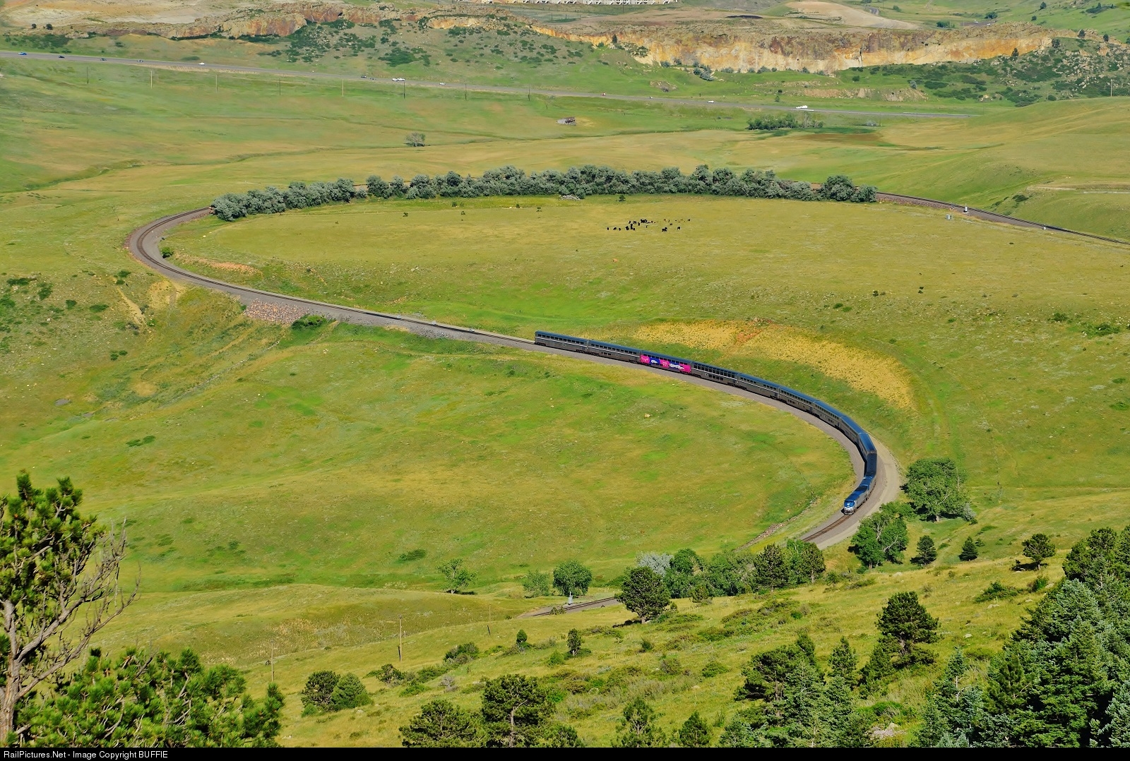 Amtrak 207 leads the California Zephyr through the Big Ten Curve as it leaves the Rocky Mountains and heads to Denver.
