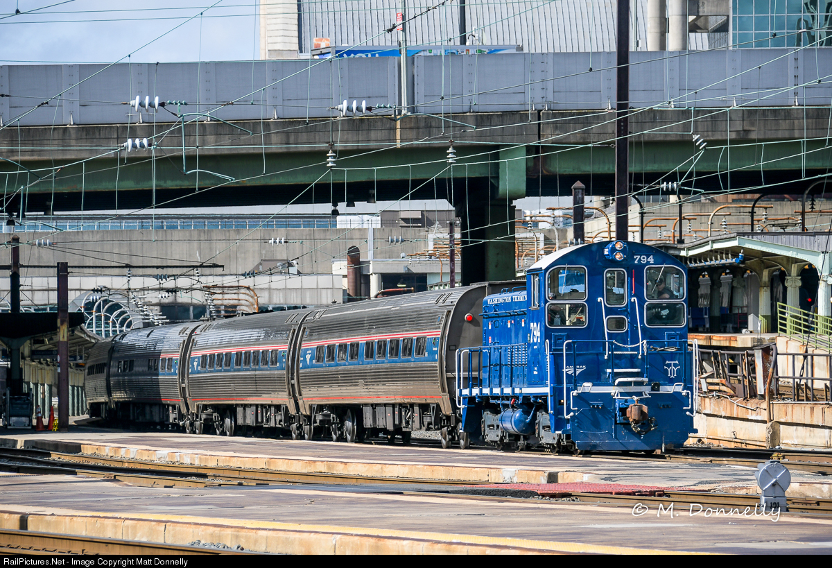 The Washington Terminal heritage unit brings a cut of cars out of the station to the yard for servicing, as its ancestors have done for over 100 years.