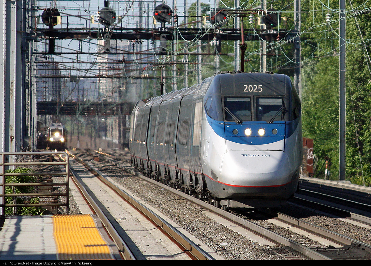 RailPictures.Net Photo: AMTK 2025 Amtrak Bombardier/Alstom Acela Express Trainset at Elizabeth, New Jersey by MaryAnn Pickering
