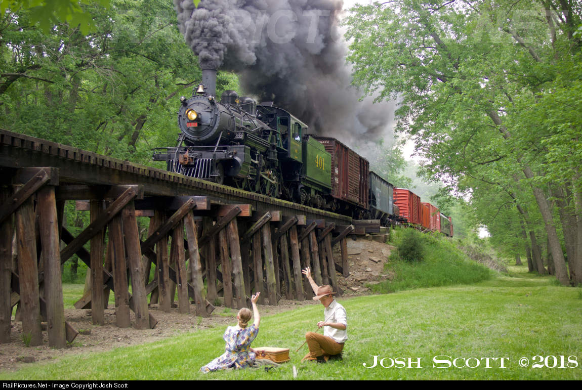 | Southern Railway No. 401 performs a runby over Camp Creek Trestle while a picnicking couple looks on. This shot is from the photo charter hosted by myself under the name Southern Rail Productions. This was the first photo charter with the 401; the event was truly a once-in-a-lifetime experience. For more information on our photo charters, please visit: https://www.southernrailproductions.com/events |