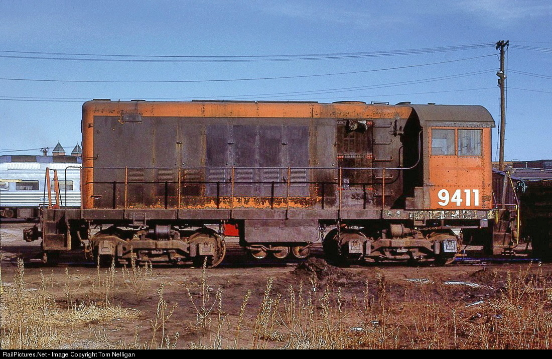 This weary-looking Alco high hood switcher, built in 1939, was one of Penn Central's oldest diesels, edged out only be a few ex-NYC SW1s. Former New Haven HH-660 0924 got a new number and a patched paint job and continued working in the ex-NH Boston yard until 1971, when it finally expired.