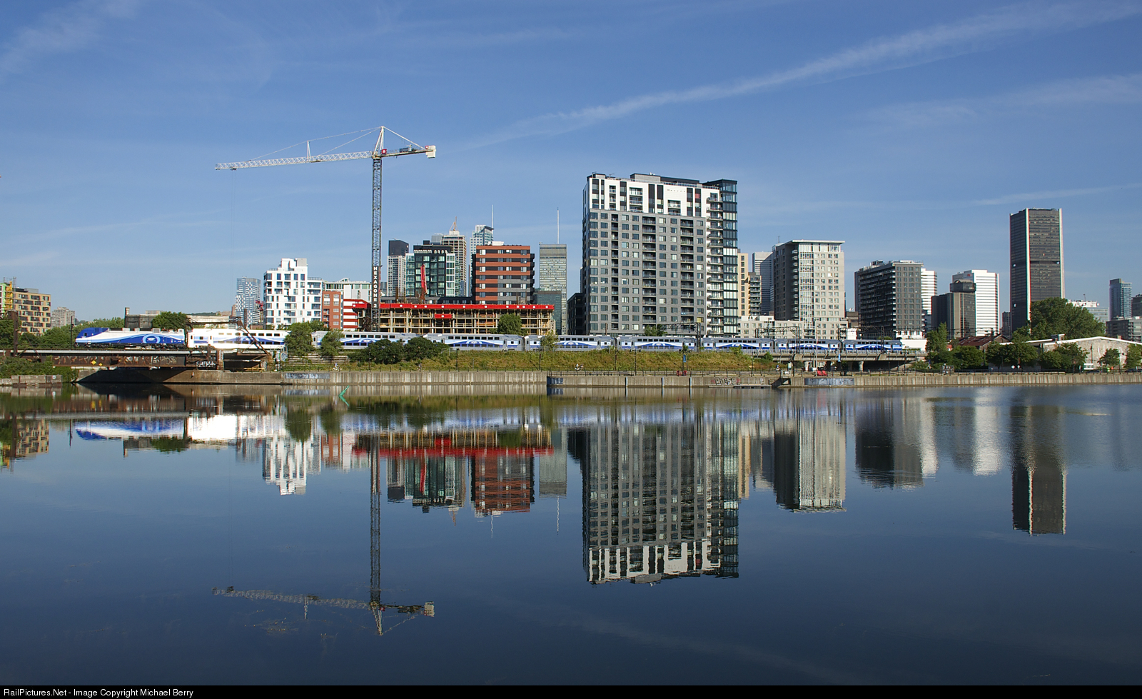 RTM 807 is reflected in the mostly still Peel Basin, along with a large number of hotels, condos and office buildings.