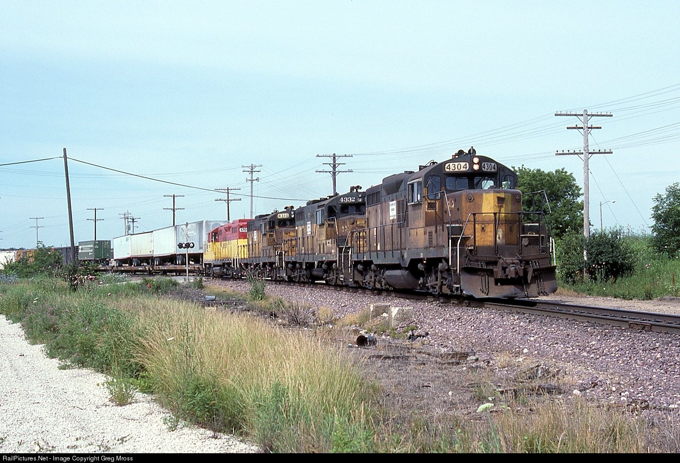 FRVR 4304 leads a freight out of Fond Du Lac, WI in July of 1989. FRVR trains on the ex-CNW Air Line were often ignored in favor of the Wisconsin Central that was right next door.