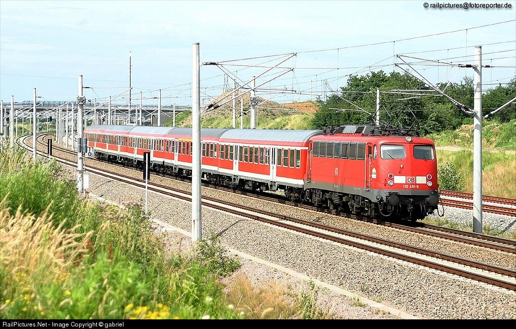| 110 481-9, built in the 50th, running with a regional train. The Piture was taken near Sinzheim, in the background two new tracks were just finished. |