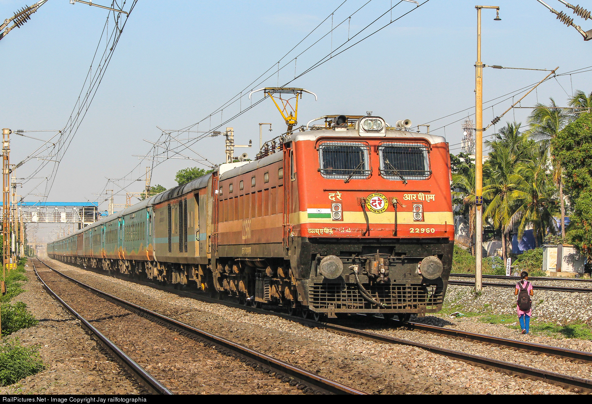 The girl appears so small in front of the WAP-4 powering HUMSAFAR Express ripping through Korattur throwing up dust