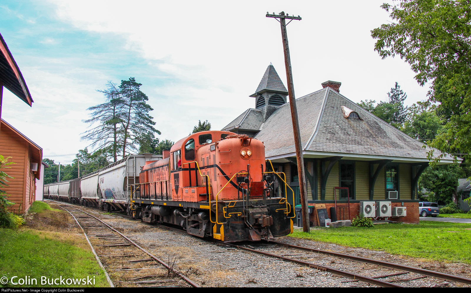 After an unsuccessful, yet beautiful as always drive to North Adams along the Boston and Maine, our luck turned around only just south of Cambridge, NY where we caught up with the Batten Kill Railroad's RS-3 #4116 heading north to Greenwich Junction with 11 loads. Here the train is passing through the picturesque village of Cambridge, NY past the beautiful D&H passenger depot—employed by the Batten Kill for their passenger excursions until 2003— and which now houses a tap room for the Argyle Brewing Company. In addition to the immaculately kept station, The Hubbard Hall Center for the Arts and Education has done an excellent job keeping the freight structures along the east side of the tracks in excellent shape. Dubbed their "Freight Yard Campus" the D&H freight house is now home to a theatre and gallery space, the Ex: Cambridge Steel and Plow Co. structure now hosts the Cambridge farmers market and occasional agricultural events.