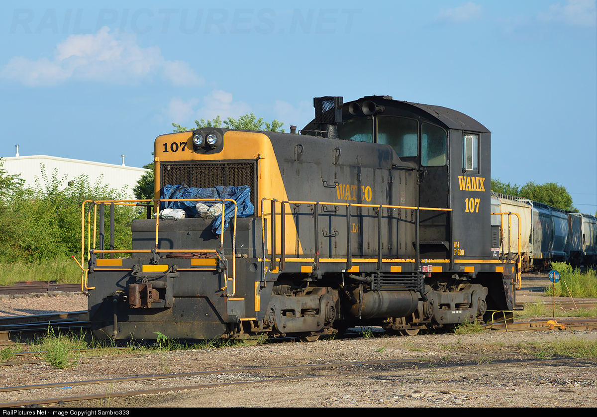 | Built for the CB&Q in 1949, WAMX 107 now works at a railcar repair facility in Millard, NE. |