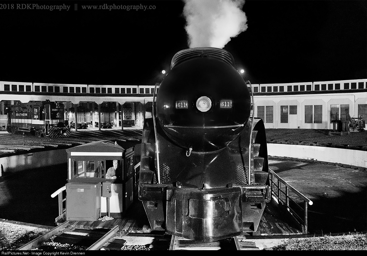 N&W 611 poses for photographers during a special night session in Spencer, NC during Labor Day weekend 2018.