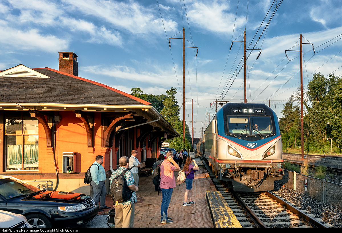An Amtrak Keystone train, led by an ACS-64, makes an early morning arrival at the 1906 built Parkesburg station.