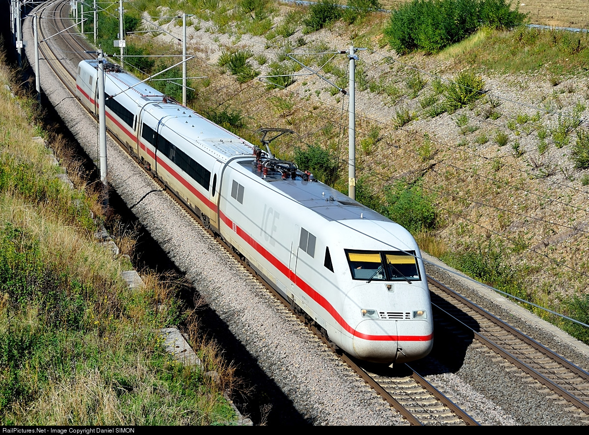 | ICE S is Deutsche Bahn's train for high-speed tests. The letter "S" abbreviates the German expression Schnellfahrt, which translates into high speed run. The train was originally used to test components during the development of the ICE 3 in the mid-1990's. The powerheads were taken from the ongoing production of the ICE 2 with only minor modifications. The ICE S became the testing train for the maintenance of the high-speed lines. Three times a year, the train runs on each line with an array of sensors and cameras to determine the line's condition. During the acceptance tests of new high-speed lines, the ICE S is usually the first train to drive the line at the design speed and beyond. |