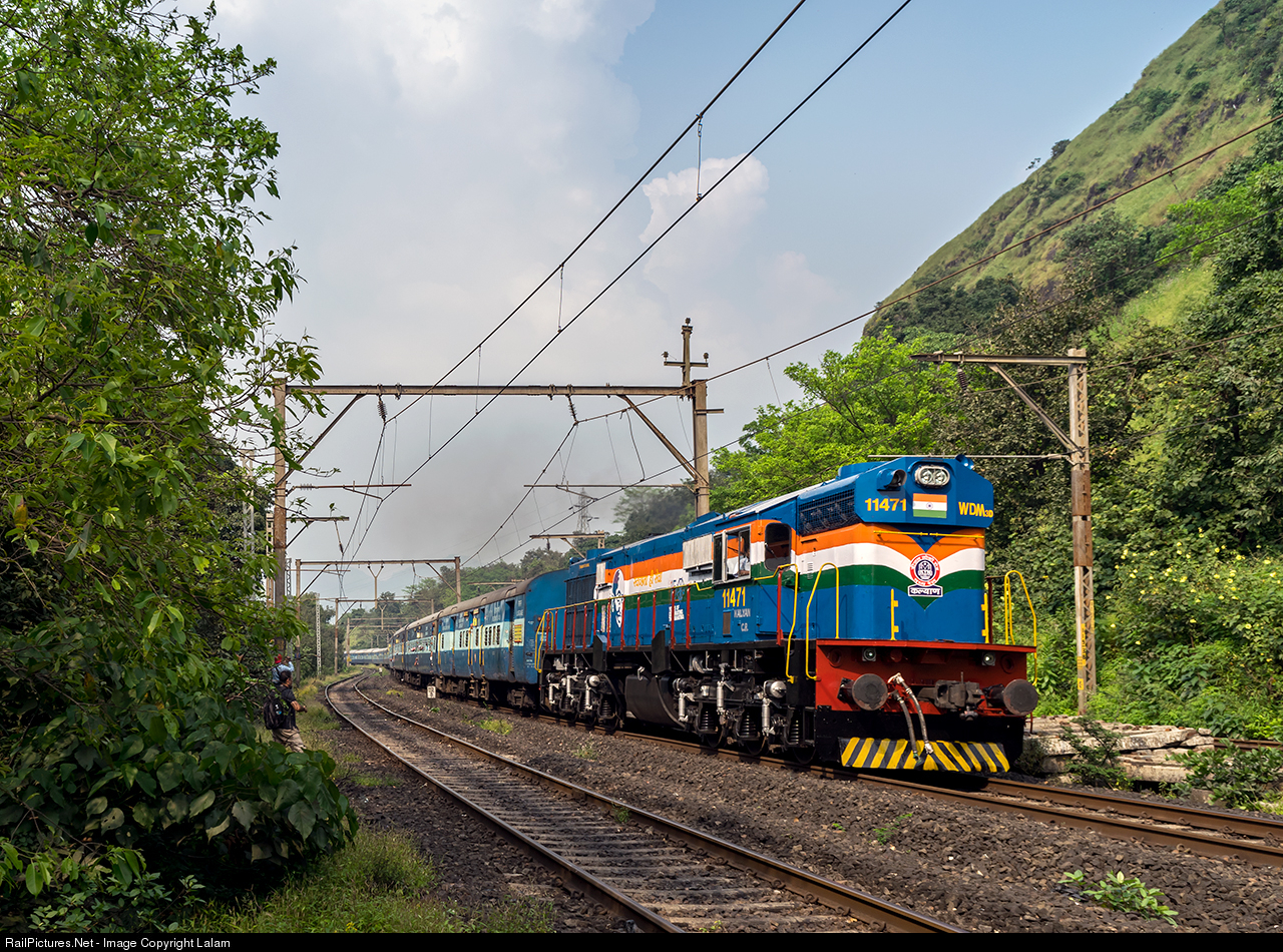 | Celebrating 150th birth anniversary of Mahatma Gandhi, painted with special theme of 'clean India' WDM-3D of Kalyan shed, hauls Mumbai to Hyderabad express through Mankey Hill.