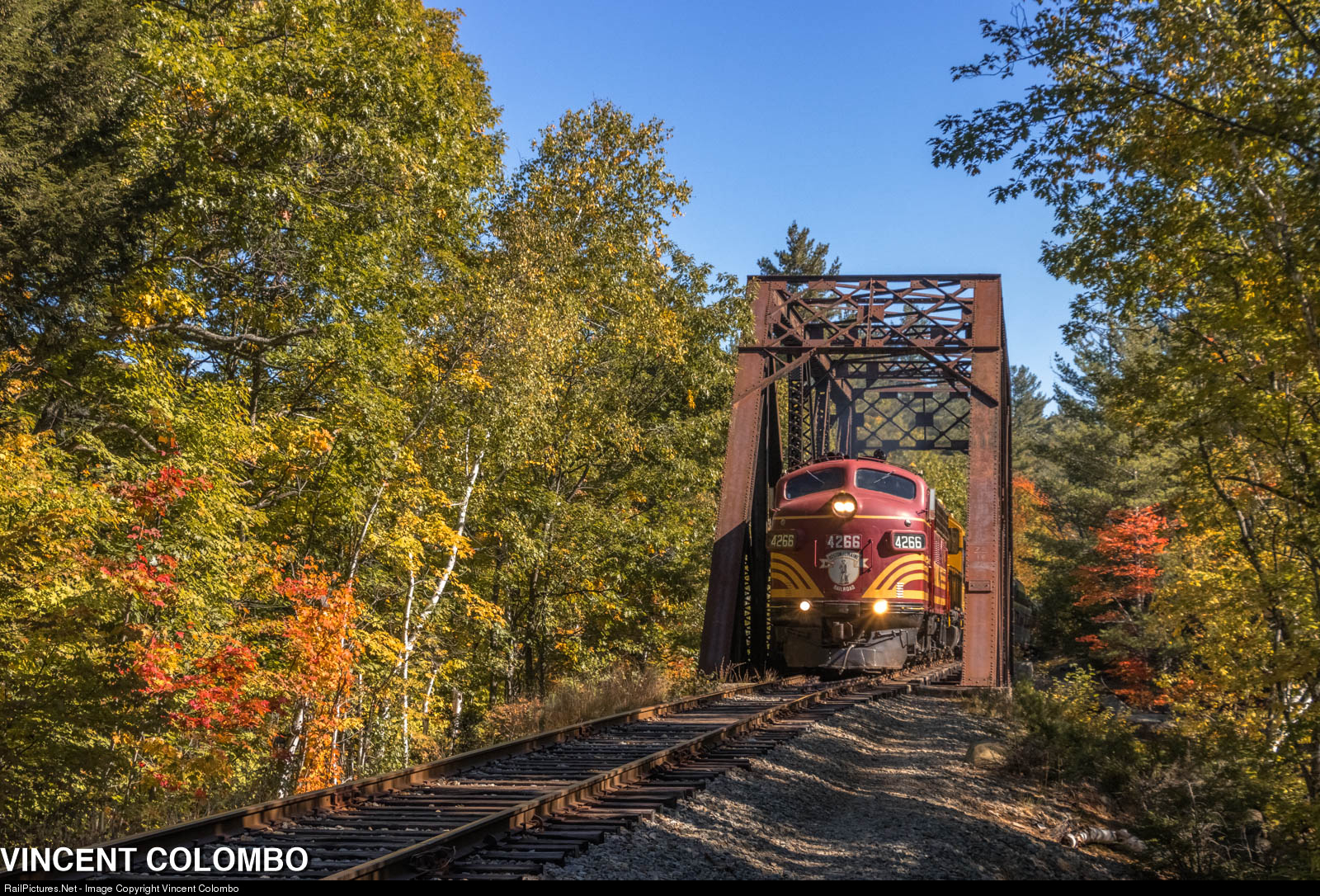 Ex- Boston and Maine 4266 crosses Second Iron and the Saco River in Bartlett with the Notch Train.