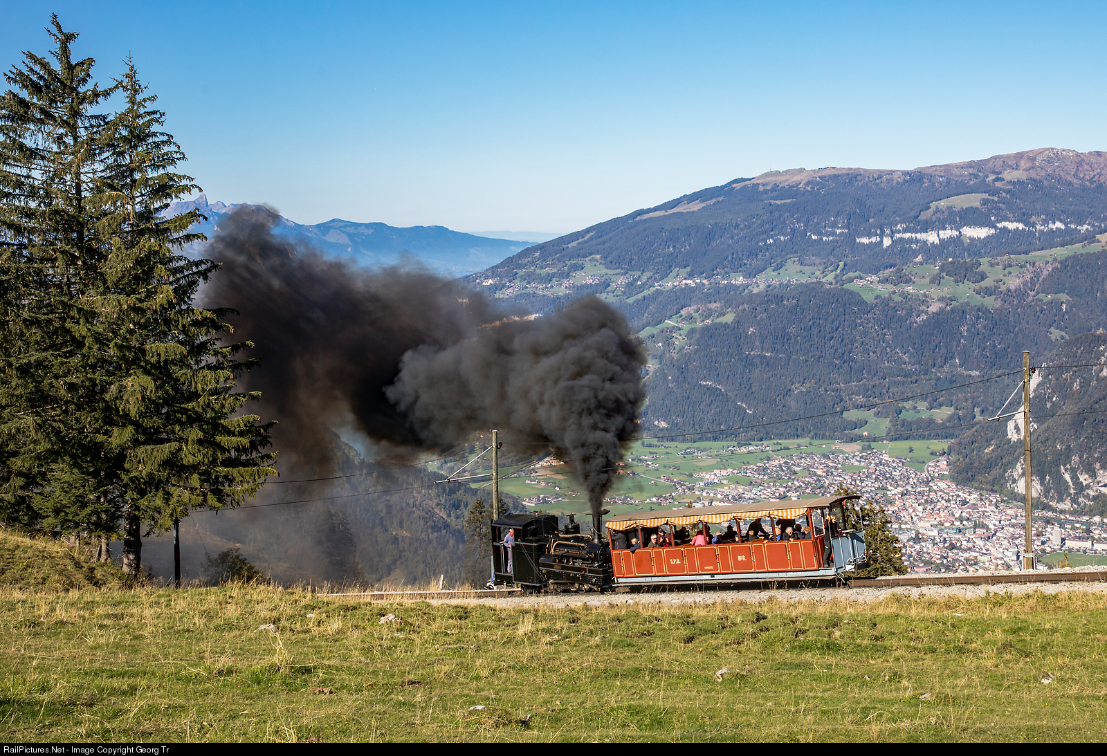 The private charter train (birthday party) left Breitlauenen crossing station shortly with Interlaken in the valley floor and the Niederhorn in the background. Steamlocomotive H 2/3 # 5 was built in 1894 by SLM Winterthur and got a new black paint scheme last winter.