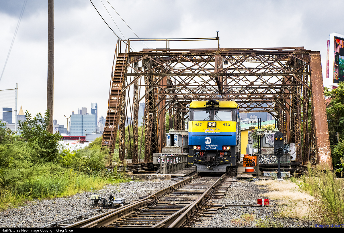 Long Island Rail Road Extra 5009 West detours down the Lower Montauk passing over the Dutchkills Bridge on their way to Long Island City Yard. This rare detour was a result of a minor derailment at Borden Avenue on the Main Line. In order to get trainsets to LIC Yard for the evening rush hour, 4 equipment extras were run down the Lower Montauk. |