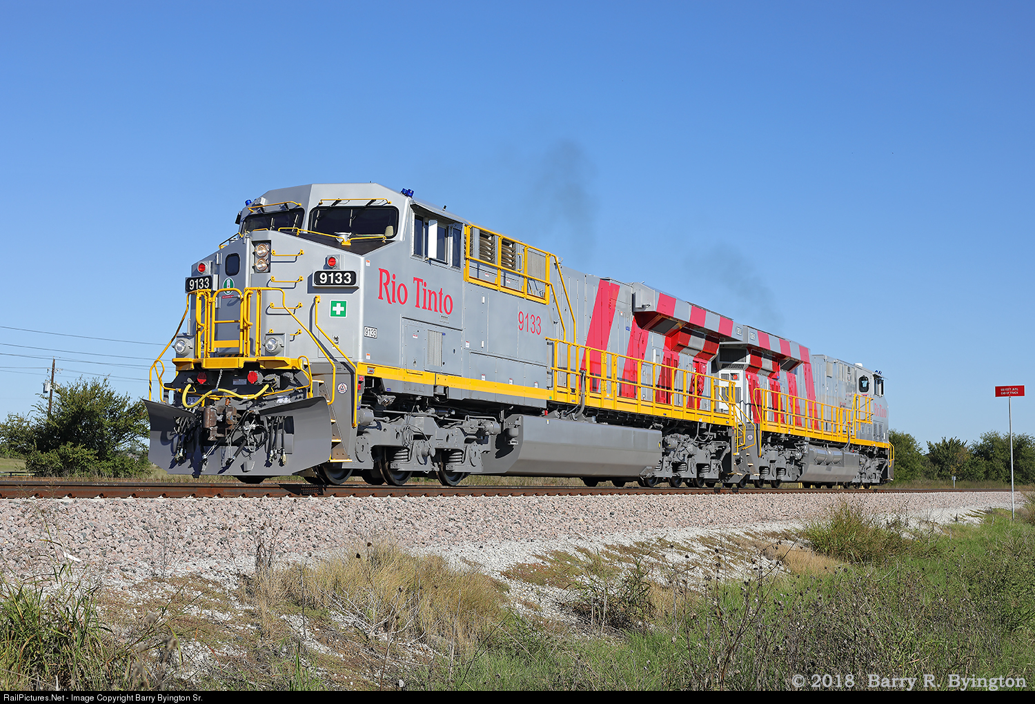 Oh no, stop, end of track ahead! Actually, not to worry; this set of new Rio Tinto ES44ACi locomotives are undergoing validation tests on the GE-FW test track at Justin, TX, and have just reversed and are heading back towards the GE plant. There are 2 signs at the north end of the test track, one reading "1000 feet until end of track", and the other reading "500 feet until end of track". No, there are no telltale signs of locomotives ever reaching the barriers at the end of track....