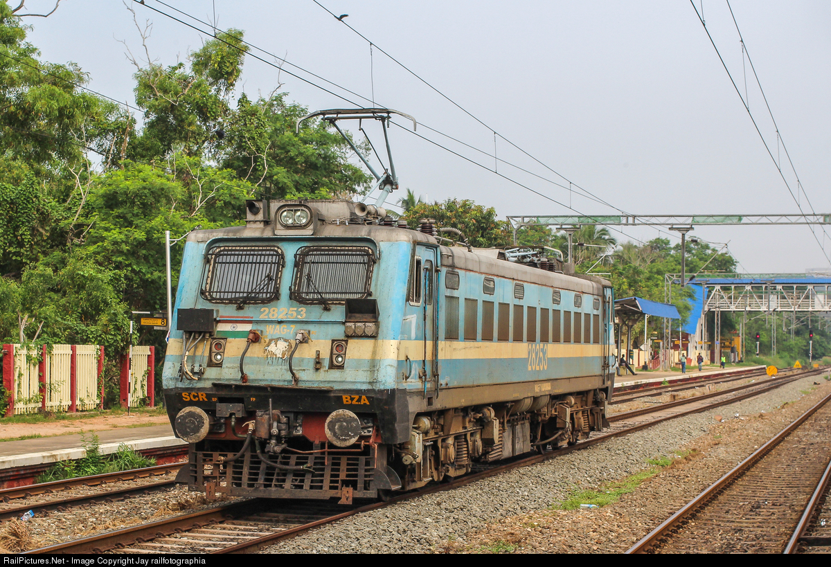Weather battered BEZAWADA WAG-7 reversing after bringing Hyderabad special fare Express to Kochuveli, for the return journey
