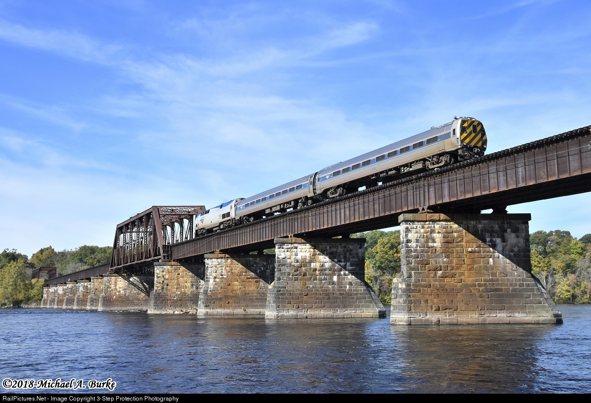 New Haven - Springfield shuttle 470 crosses the Connecticut River in Enfield.
