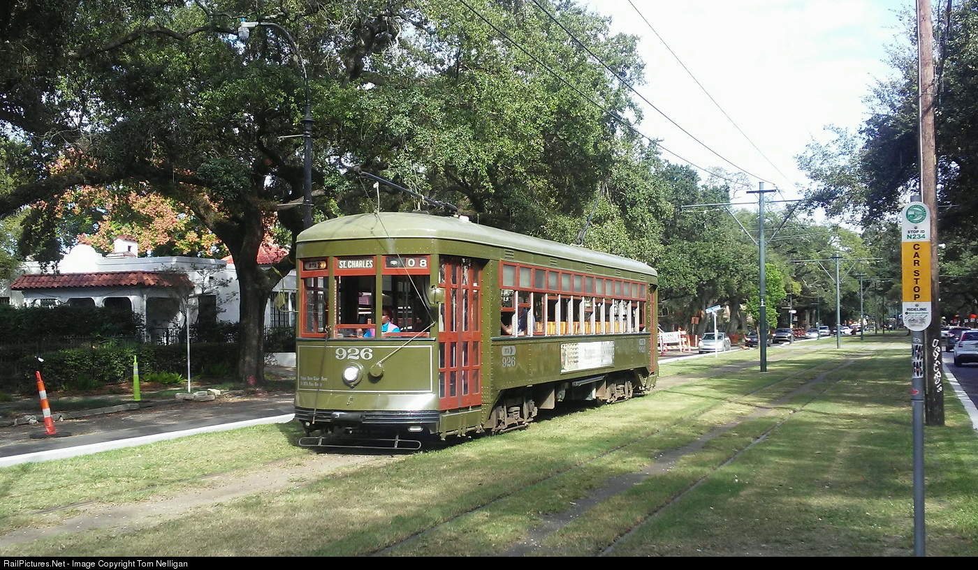 The St. Charles streetcar line of the New Orleans Regional Transit Authority is a wonderful historical flashback thanks to classic cars built in the 1920s. Ninety-four-year-old NORTA car 926 carries its age well as it clatters outbound on St. Charles near Napoleon Ave. amid the greenery of the New Orleans Garden District.