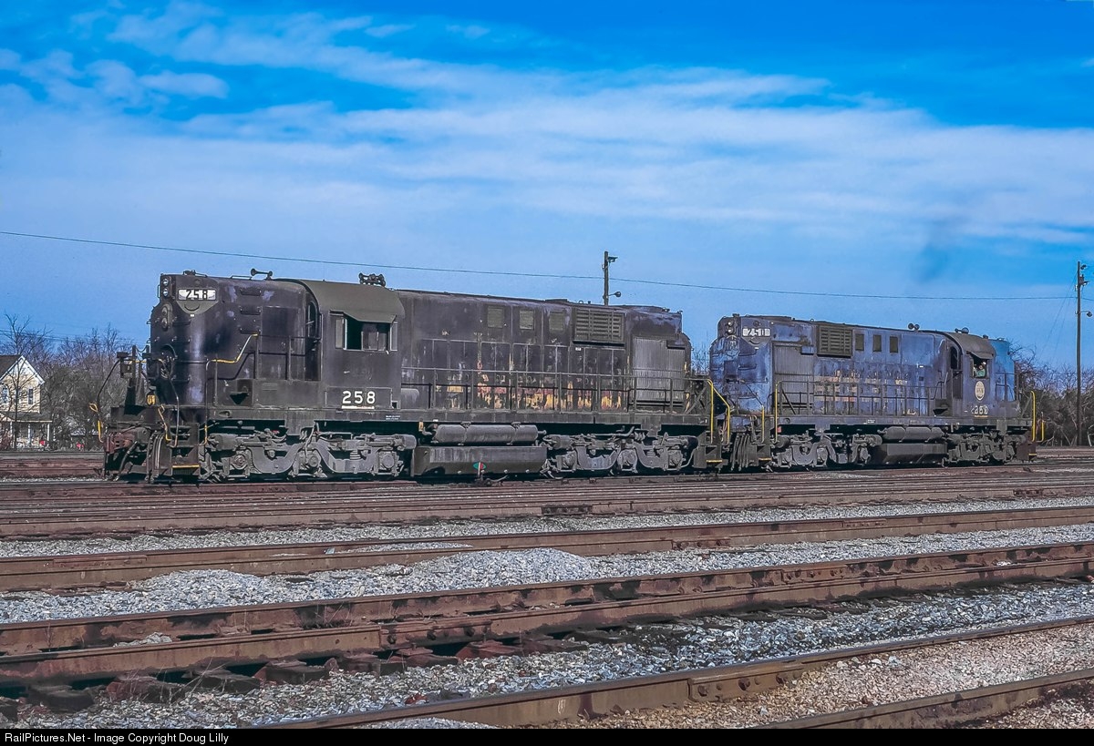 The highest- and lowest-numbered of Norfolk & Western’s, as well as Nickel Plate’s, nine RSD12’s work out their final years at N&W’s coal docks at Lambert’s Point, Virginia. Striping from their NKP days is peeking through the N&W paint on both of the Alco’s.