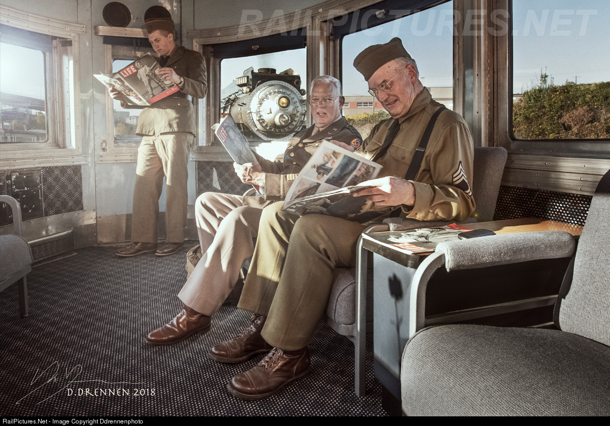 Troops pose for throwback photos as the Daylight rests in the background. At Lerro Productions Photo Charter of the Southern Pacific Daylight.