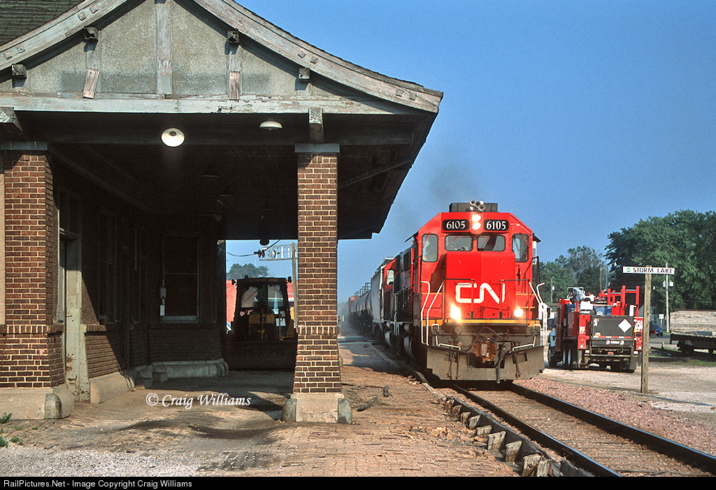 Really glad I got a shot at the Storm lake Depot back in the day. Not sure when it came down, but the depot at Storm Lake is long gone. Back in 2005 we did a chased on the Cherokee Sub of a nice afternoon westbound local out of Fort Dodge. Don't think this was really common to get afternoon delights on the Cherokee Sub? The Cherokee Sub runs from Tara, IA, at MP 381, to Sioux City, IA, at MP 508, and Storm Lake is located at MP 428.