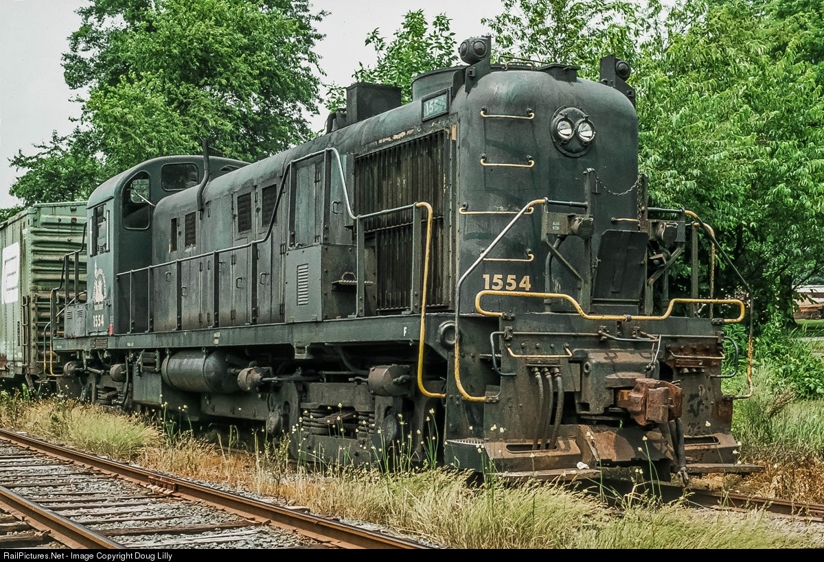 Many photos of Jersey Central RS3 1554 have appeared on this site as is serves the Delaware-Lackawanna. Here the 1953 Alco is in its original paint on the rails of new owner Black River and Western. A few months after this photo, the 1554 will be repainted in the CNJ “Red Baron” scheme, although I don’t think it was still a CNJ asset. After wearing two BR&W schemes, the RS3 will be acquired by the Hawk Mountain Chapter, NRHS, and returned to its original scheme in 1985.