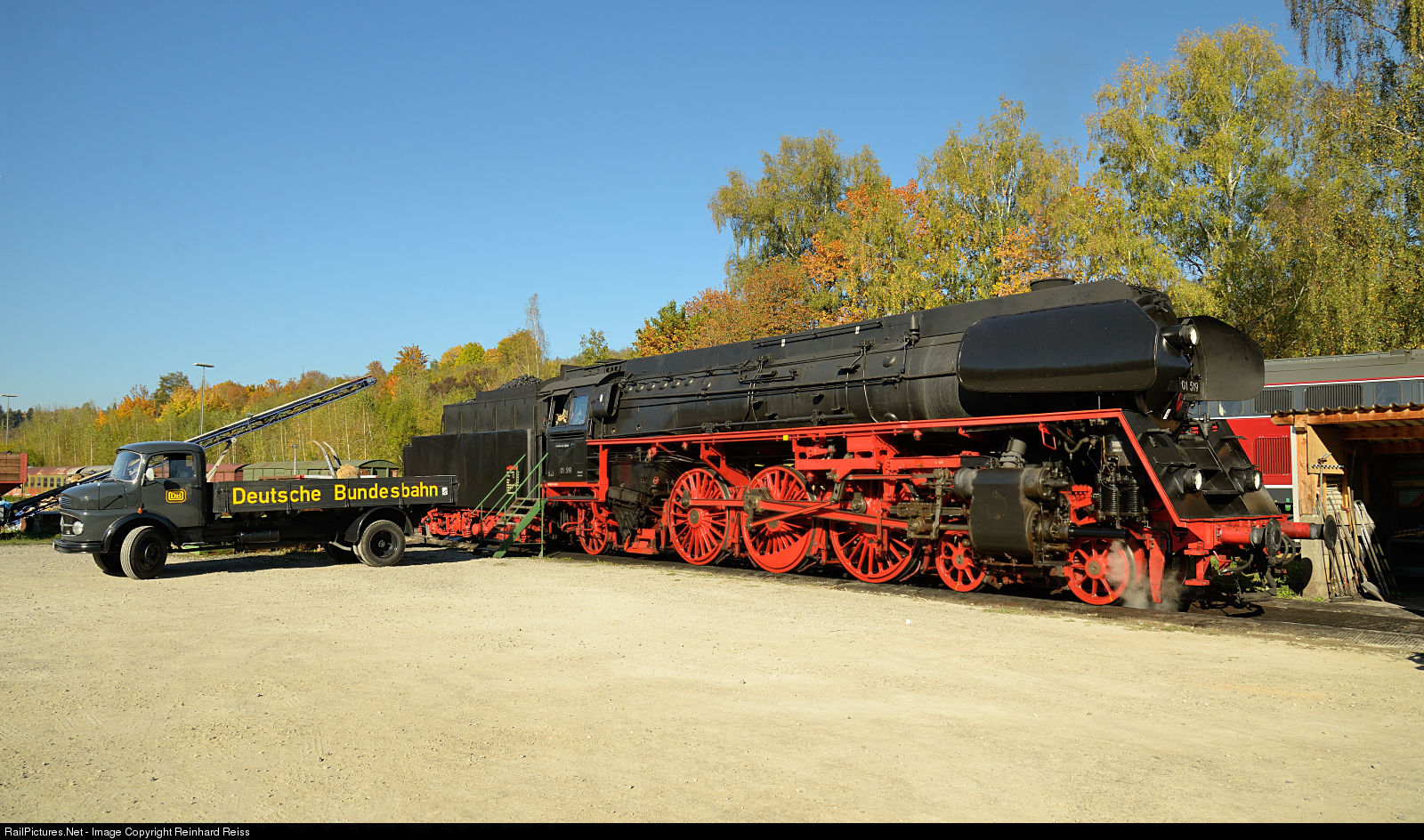 During Rottweil Steam Days former Reichsbahn 4-6-2 Pacific was presented and open to the public. On the left a Mercedes truck of the former "Deutsche Bundesbahn" can be seen.