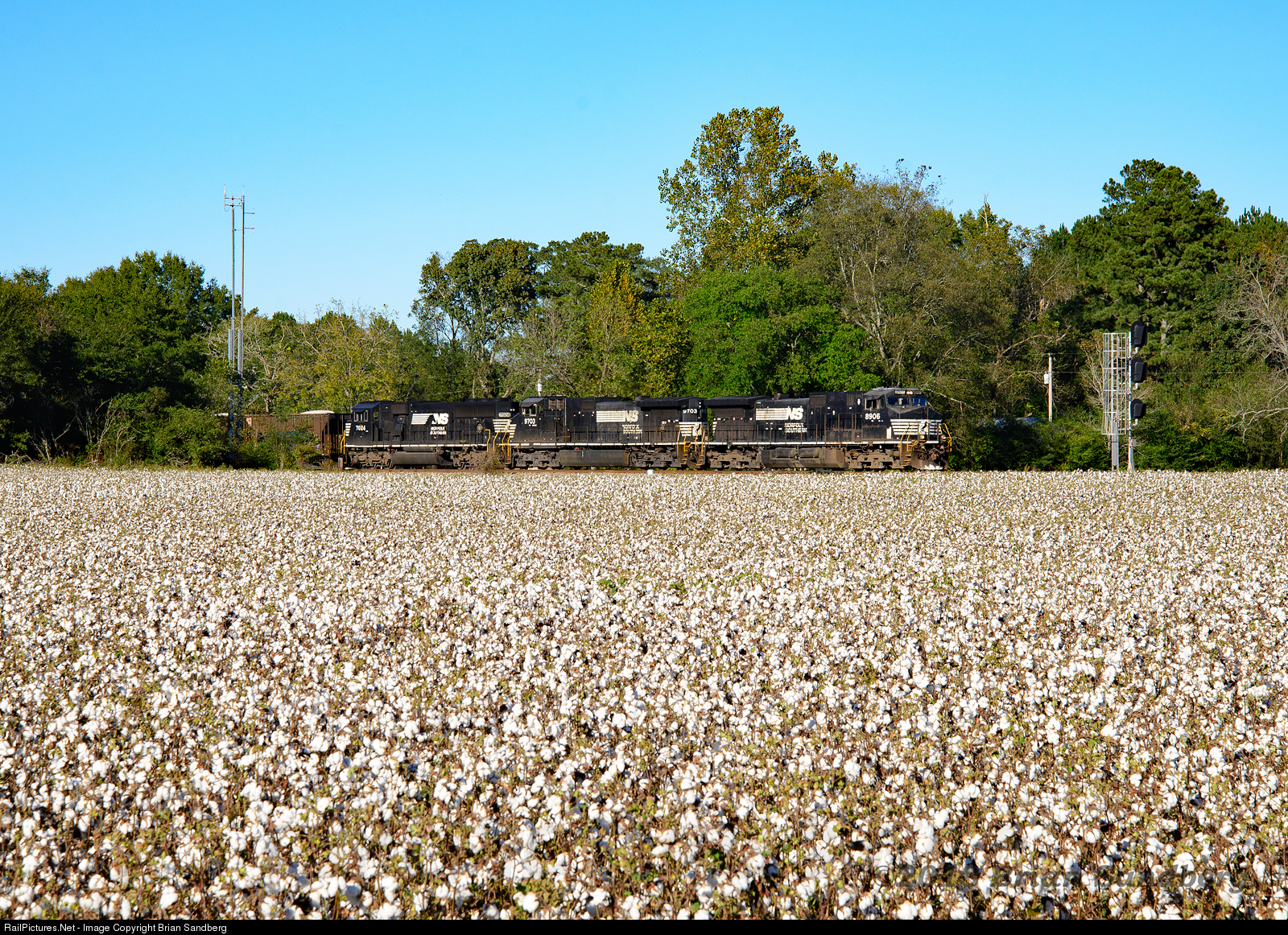 | NS 8906, 9703 and 7024 lead a coal train for Plant Wansley passing a cotton field at Hall Oostanaula, GA 10/21/18. |