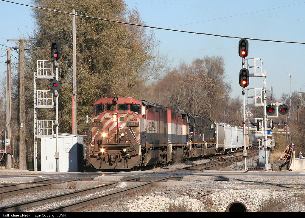 After making a pickup from Joliet Yard which included two Illinois Central SD70 locomotives, M336 heads east crossing the Metra Rock Island district and Washington Street grade crossing.