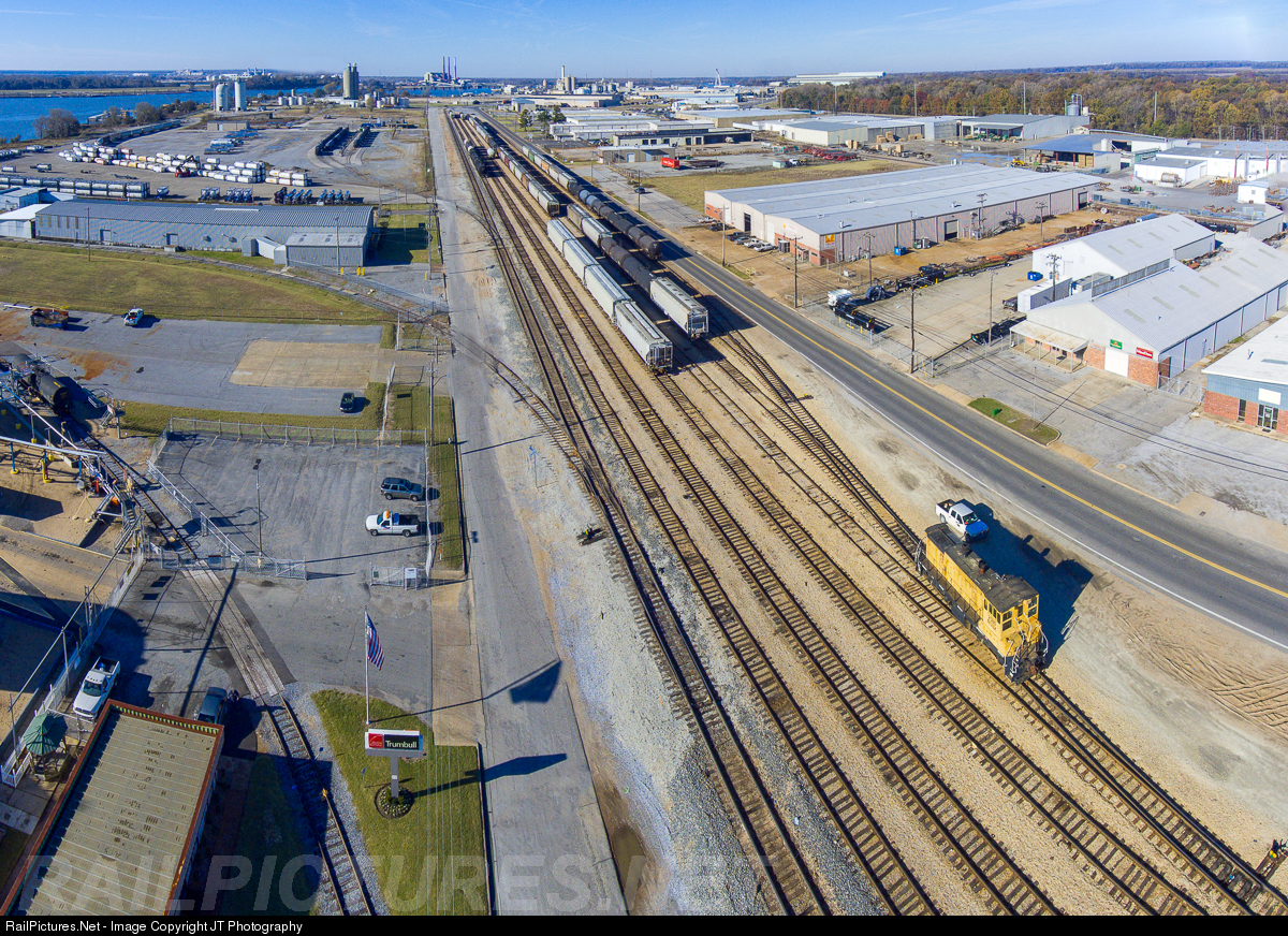 | Deep within President's Island, RSSX 2580 prepares to pull a cut of cars out of the receiving yard. In the background across the river, one can see the TVA plant. |