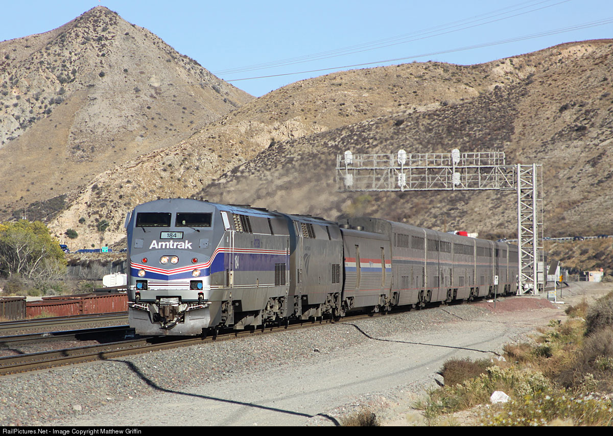 RailPictures.Net Photo: AMTK 184 Amtrak GE P42DC at Cajon, California by Matthew Griffin