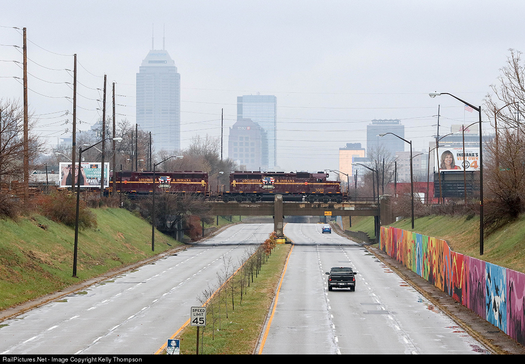 | LIRC 3001 leads Z550-24 east back to home rails as it crosses over Madison Ave on the south side of Indianapolis, Indiana. It was a rainy, foggy morning but the LIRC pulled me out of the house for the day! |
