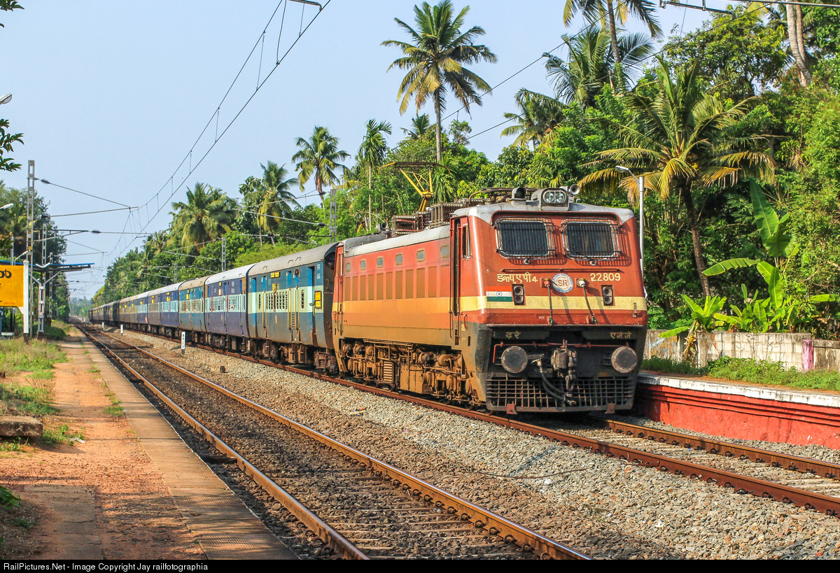 ANANTAPURI Express begins its long journey to Chennai city powered by ARAKKONAM WAP-4 passing through Kappil