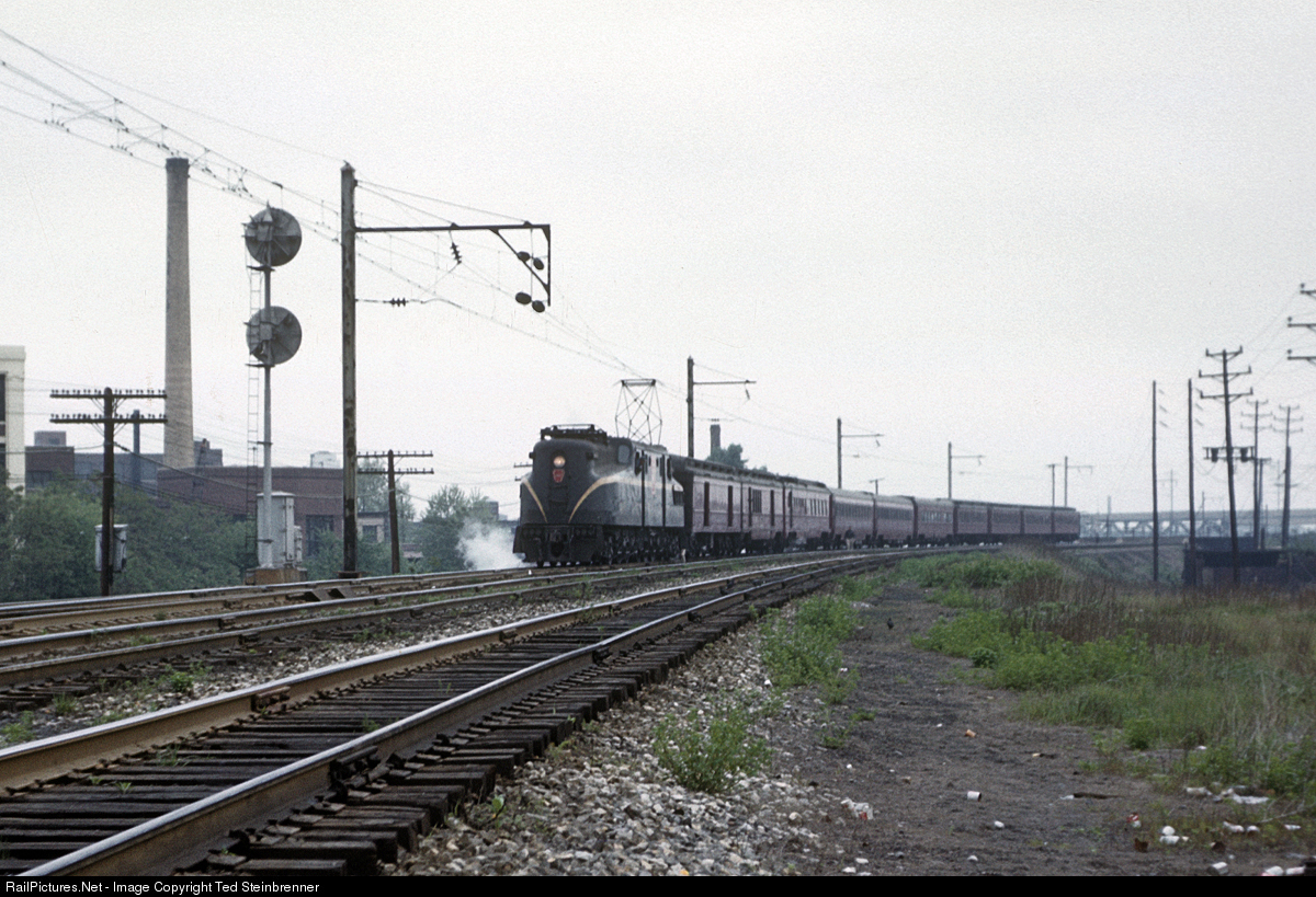 My father was present for the electric to diesel locomotive change at NK tower in Newark, NJ of the final westbound Black Diamond. Here, the PRR GG1, which pulled the train from New York Penn Station, arrives at the PRR-style position-light signal. His photo of the train leaving with Lehigh Valley PAs appears in "Lehigh Valley -3 In Color." R.T. Steinbrenner Photo