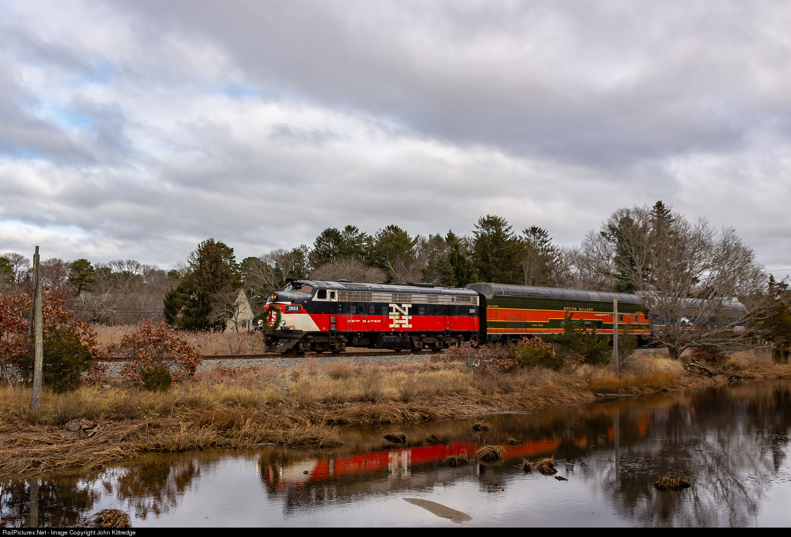 | New Haven Returns: Former New Haven FL9 2011 is right at home on former New Haven rails as she clips along on Mass Coastal/Cape Cod Central Railroad's Christmas Train. The engine has just entered service having been purchased from the Connecticut Department of Transportation about 2 months ago. |