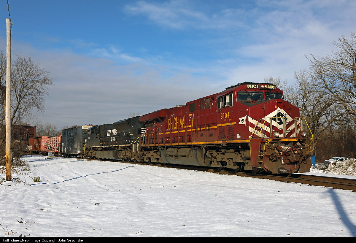 The Lehigh Valley heritage unit rolls 11R off the Mohawk River bridge and is about to cross Maxon Road. LV units were a common sight here running SB on D&H NE-87 back in the pre Conrail D&H era. The 50 car NS 11R is running from East Deerfield, MA (Pan Am) to Binghamton. The NS crew took over at Mohawk Yard on the other side of the bridge after a Pan Am crew brought 11R over from East Deerfield. Just a little over a mile ahead the ownership of these tracks changes from CP to NS at CP-485.