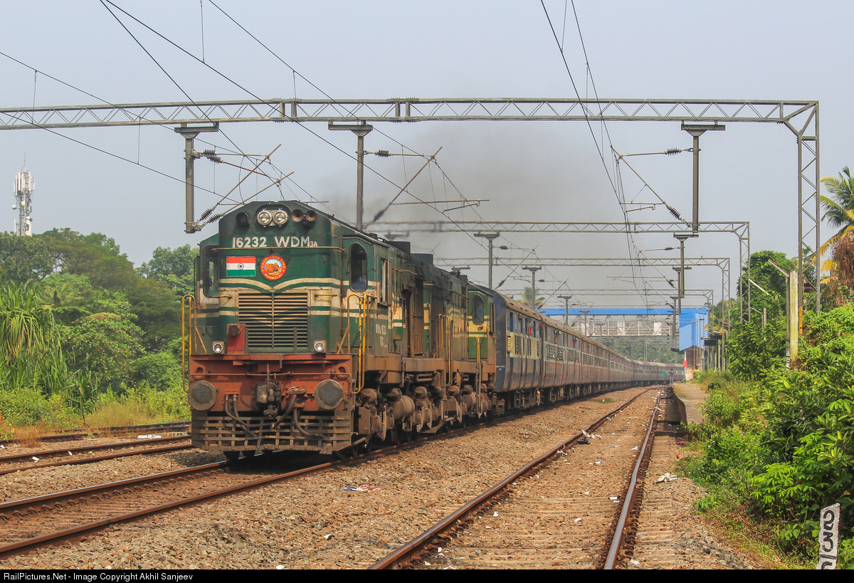 RailPictures.Net Photo: 16232 Indian Railways WDM-3A at Turavur, India by Akhil Sanjeev