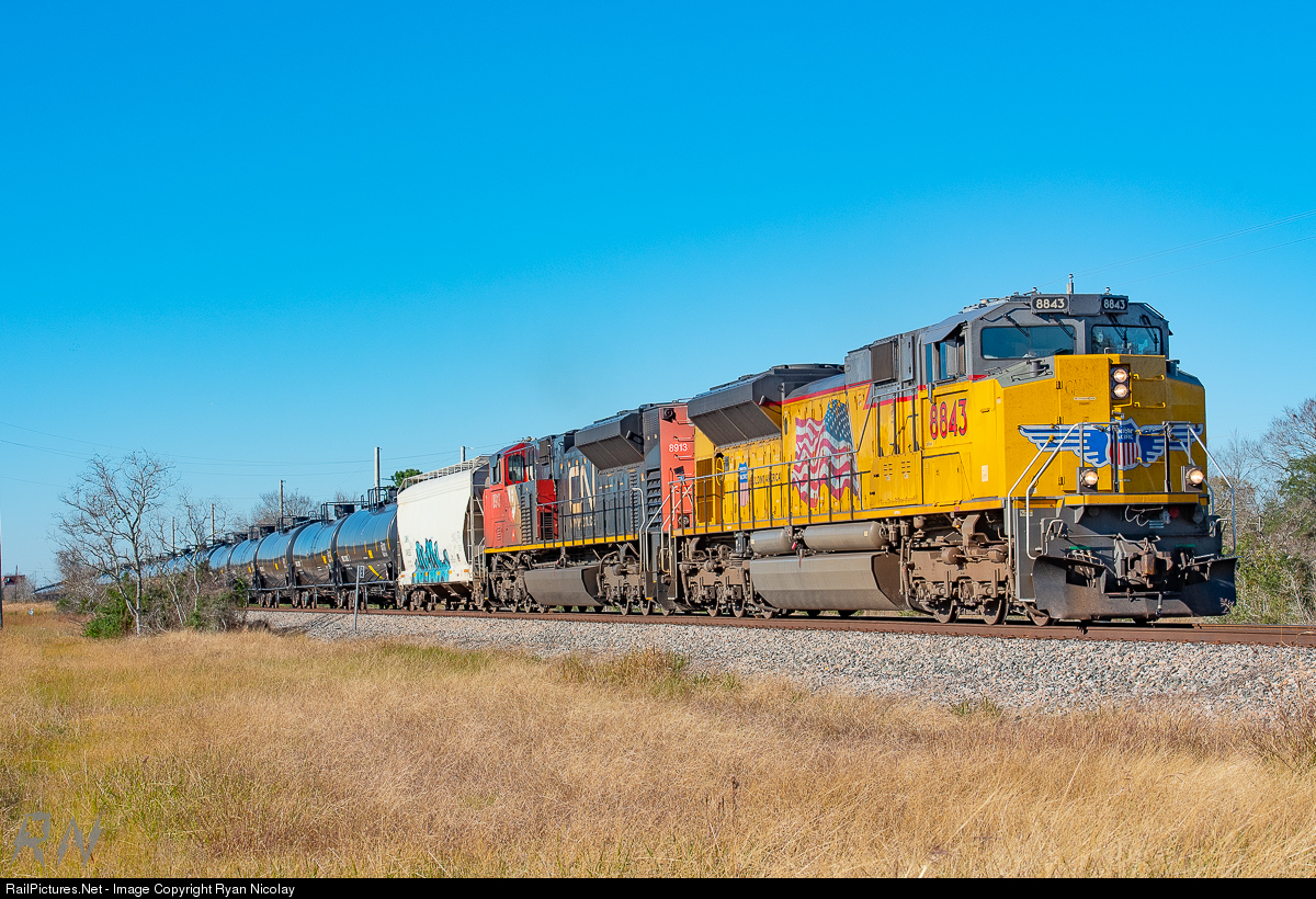 RailPictures.Net Photo: UP 8843 Union Pacific EMD SD70ACe at Dickenson, Texas by Ryan Nicolay