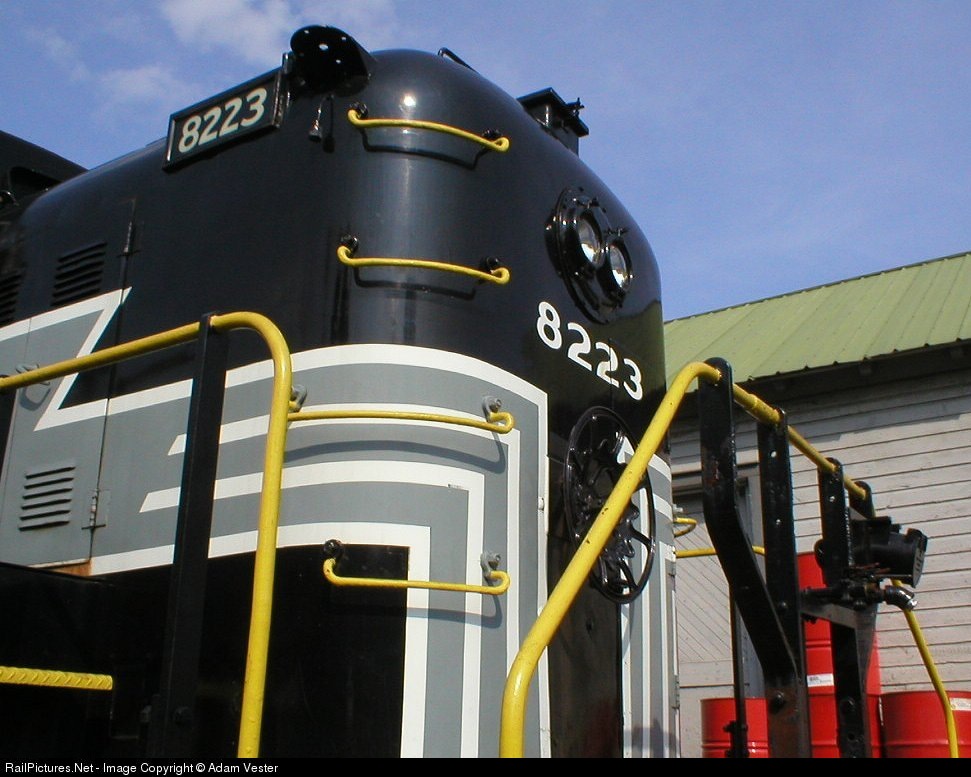 This Alco was built in August of 1950, for the NYC. In 1966 is became Penn Central 5223. In 1976 it became Amtrak 100, and was later restored as NYC 8223.
