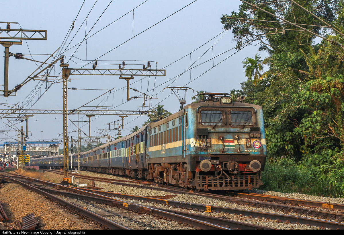KAZIPET WAG-7 thick with grime powering an horribly late Kollam Jn bound pilgrim train, leaving Kayankulam Jn after scheduled halt