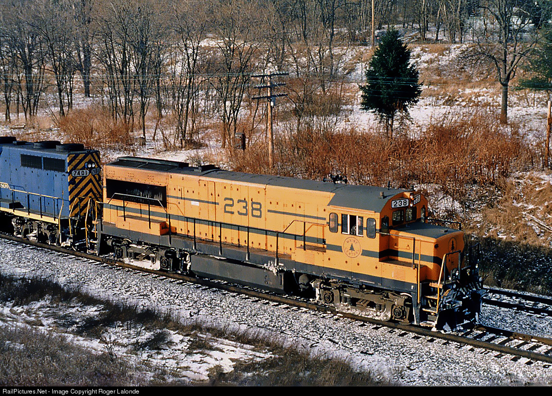 Maine Central 238 is one of several U25B's purchased from Rock Island when the Rock ceased operations. A Mike Bledsoe photo.