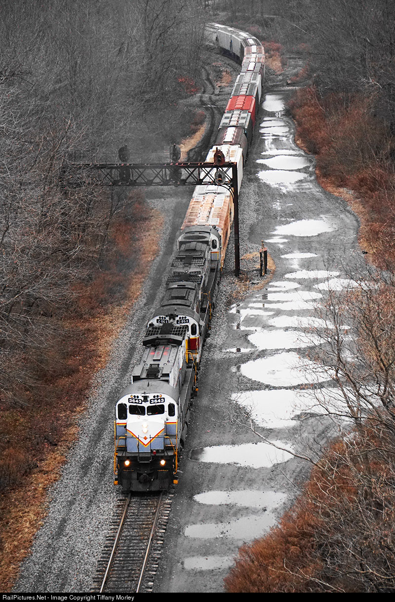 GVT's Delaware Lackawanna leaves Scranton late morning with a train. Locomotives: DL 3643, DL 2461, DL 3642 with DL 405 and DL 2423 on the rear