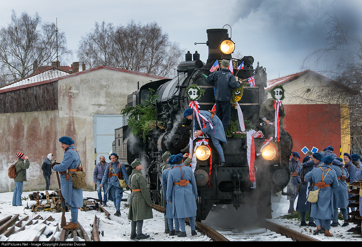Reconstruction of the arrival of the first Czechoslovak President T.G.Masaryka from exile to Bohemia. The decoration of the steam locomotive 310.023 in Horní Dvoøišì participated in a festive event in period costumes.
