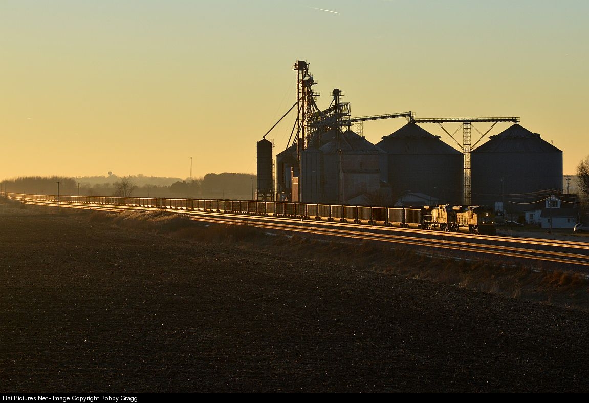 In some nice glint light, UP 8822 leads a coal train east into Rochelle.