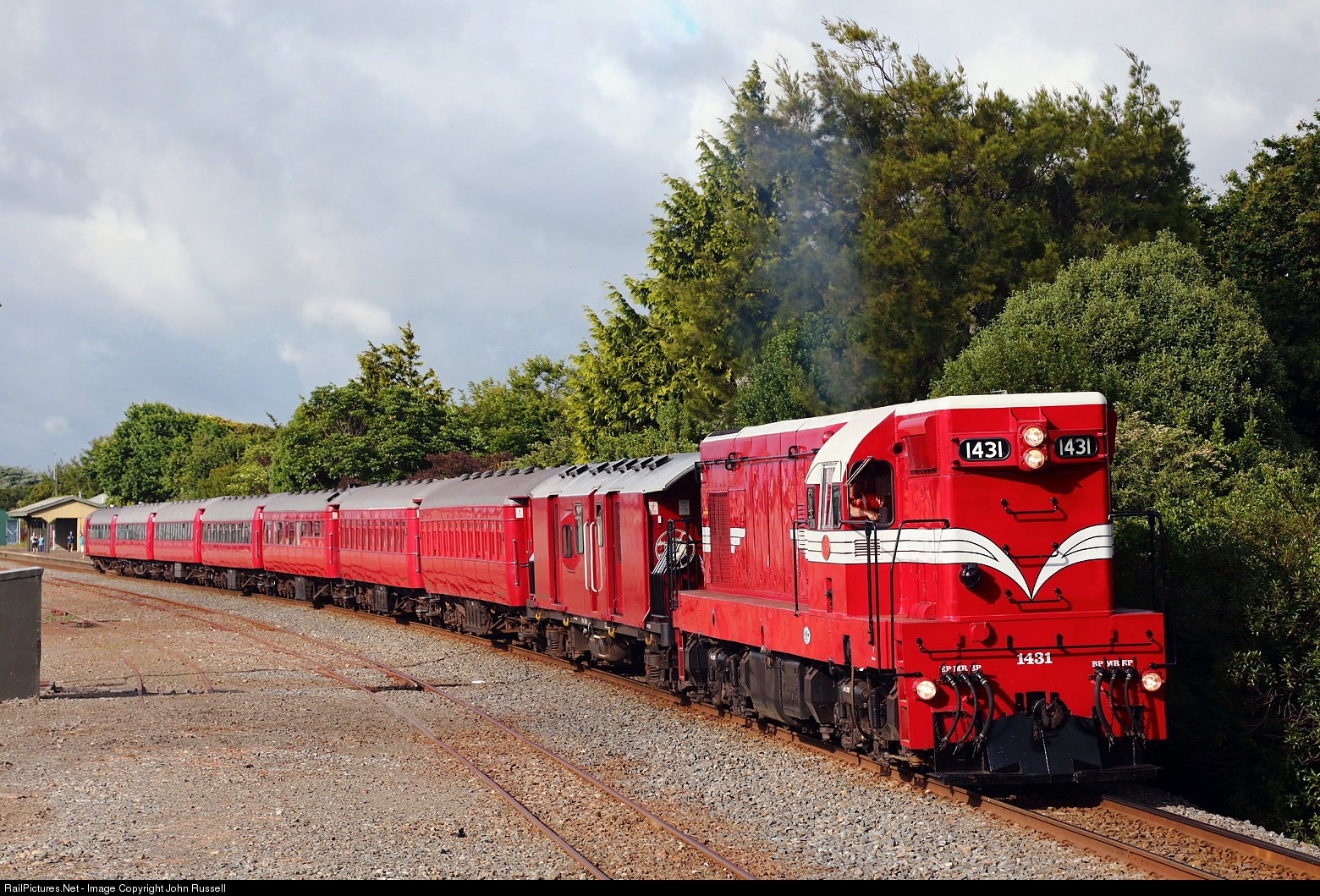 1431 was built by Clyde Engineering in NSW in 1957 for NZ Railways. It was sold to Steam Incorporated in 1988 and, after restoration, returned to mainline service in 2009. Working a Steam Inc excursion Paekakariki to Woodville, Masterton, and Wellington the heritage locomotive is seen departing Levin.