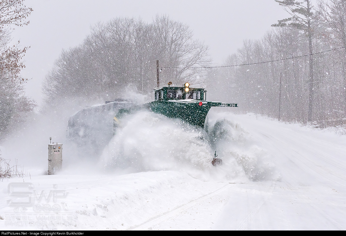 On January 19 and 20, a major winter storm dumped as much as 2 feet of new snow across the Green Mountain Railroad's Bellows Falls Subdivision. Vermont Rail System responded to the storm by dispatching the GMRC Russell Plow, X106, with GMTX GP38-3 2684 shoving from Rutland to Bellows Falls, Vermont. The plow is seen in Shrewsberry, Vermont, heading toward Cuttingsville.